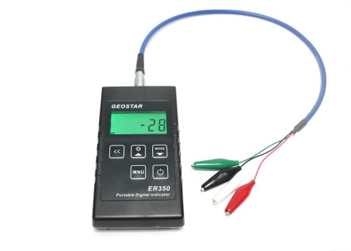 ER350電阻式測讀器適用於測讀Geostar電阻式鋼筋應力計、電阻式荷重計等電阻式系列產品。本儀器具有兩種信號輸入模式可選,並配有功能選單、冷光液晶螢幕顯示、可以設定時間及自動關機、低電量警報,並具有-9999~9999輸出顯示範圍。