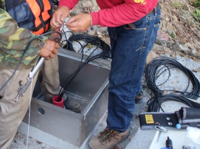 理想的方法是將傾斜計安裝在傾度管裏,傾斜計按照一定的距離排列連成一串,由滑輪裝配放入鑽孔中。